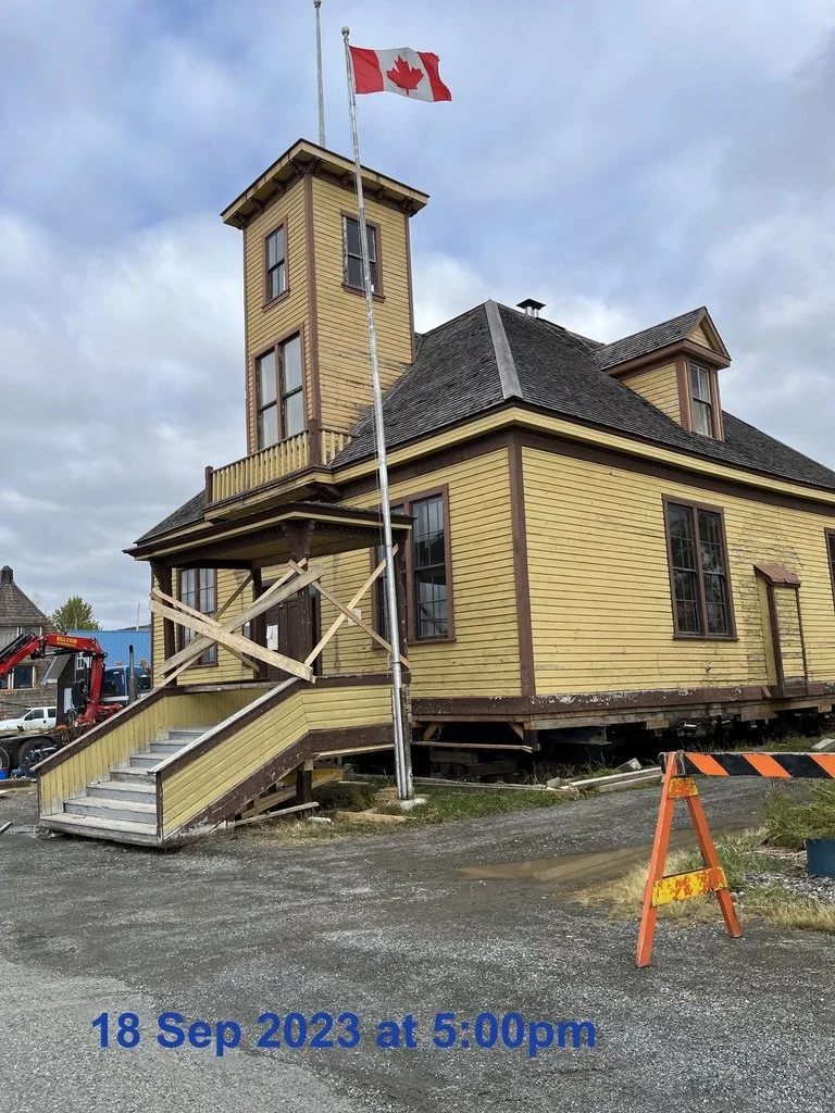 In 2023, after 6 years of planning, enquiries, and fund raising, the move came to fruition. A basement was built above ground on the back of the lot. The Courthouse was moved back onto it. (Hurrah!)